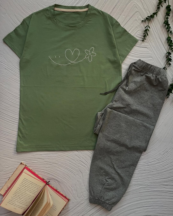 ست تیشرت شلوار لبخند و قلب که کیفیتش تضمینی هست مخصوص دخترای اسپرت پوش مناسب سایز ۴۲(البته قبلش مشخصات رو چک کن) قد تیشرت:۶۶ دور سینه:۹۶ قد آستین:۱۶ قد شلوار:۹۳ قد فاق:۳۳ دور ران۵۲ باور نکردنیش فقط :۳۱۸تومن جنس تیشرت:نخ پنبه جنس شلوار:اسلش ملانژ ارسال برای قم رایگان کمتر از ۲۴ساعت هر روز ارسال به تمام نقاط دارم پس هر جا باشی خیلی سریع میرسه بهت
